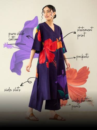 Blue Block Printed Cotton Kurta Set